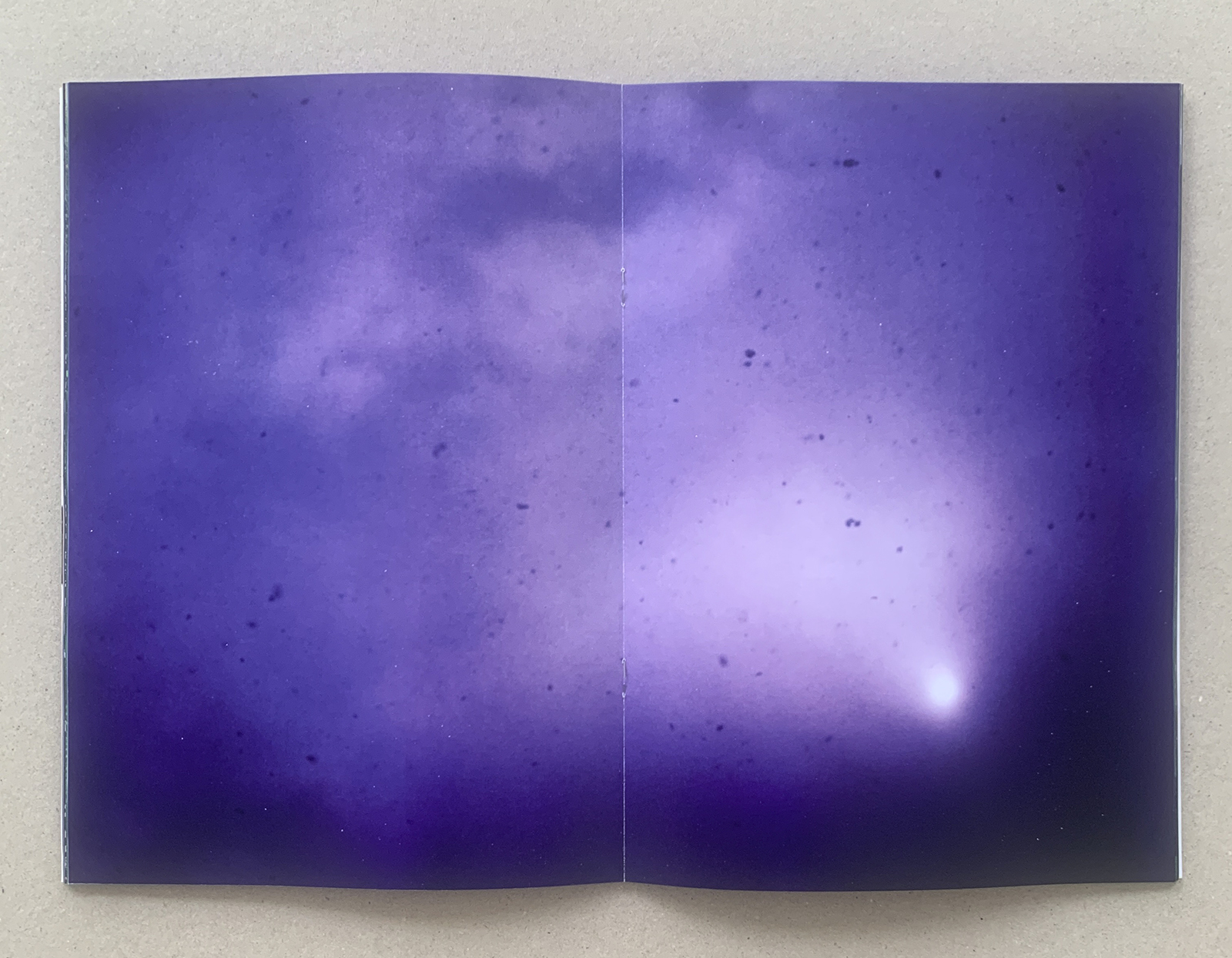 Experimenting with plastic-rich historical photographic media and playing with scale in the publication, I photographed skies with a plastic 1970s Polaroid 420 camera using discontinued Fuji FP-100C Instant Colour Film, reclaiming and lifting negatives to create a series of ‘Plastic Skies’, human marks an integral part of the prints.